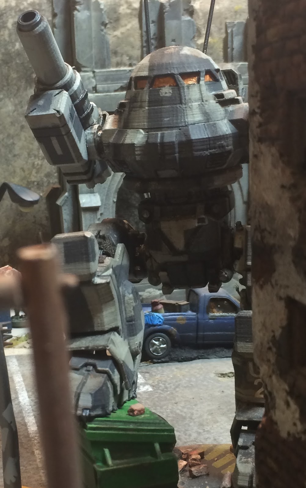 The development of a science fiction convention sized miniatures game involving robotic war machines, armored forces, and infantry battling in the colossal ruins of the future wasteland.